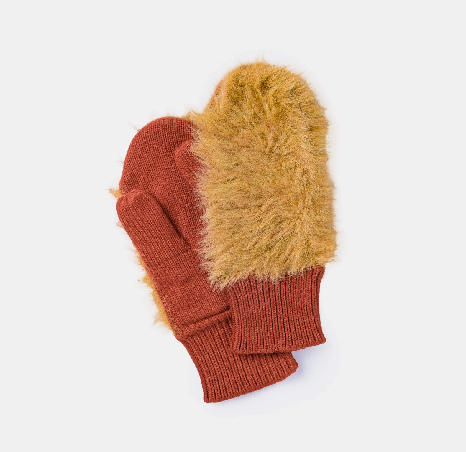 Statement-making fuzzy faux fur mittens with soft knit palms and a generous ribbed cuff to keep out the cold. Fully lined, plush, and cozy.